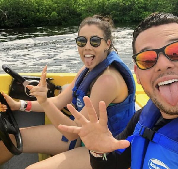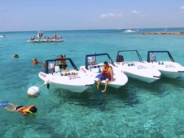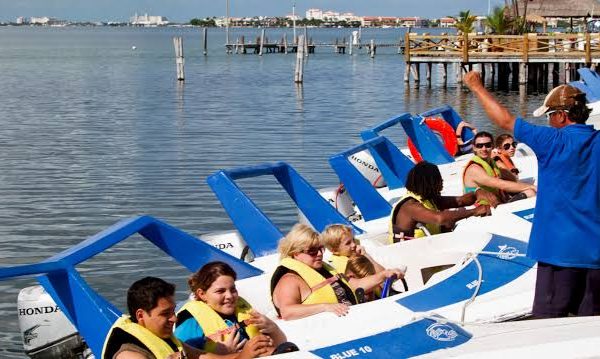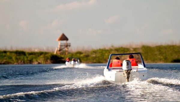 Ride a boat through the ocean and lagoon of Cancun